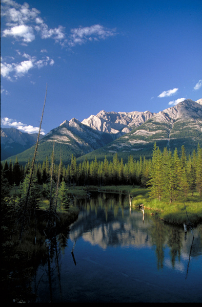 一個世界上最美的地區 , 在加拿大的山裡, 就像一個與世隔絕的桃花源, 與溫哥華相距1000公里以上, 這是舉世聞名的 洛磯山脈, 在夏天那裡的水藍的像剛調好的顏色,清新脫俗, 表面毫無水痕,像一面鏡子,照久了,您可能會想待在那裡, 如果想跟山親近,來到這麼準沒錯, 有人說像瑞士, 但我覺得不一樣, 這裡的山更能親近,就像住在家裡的親人一般,或像是我們去他們的家中作客, 還有許多的動物隨時出現在身旁, 因為是我們進入了他們的世界, 我們來作客.